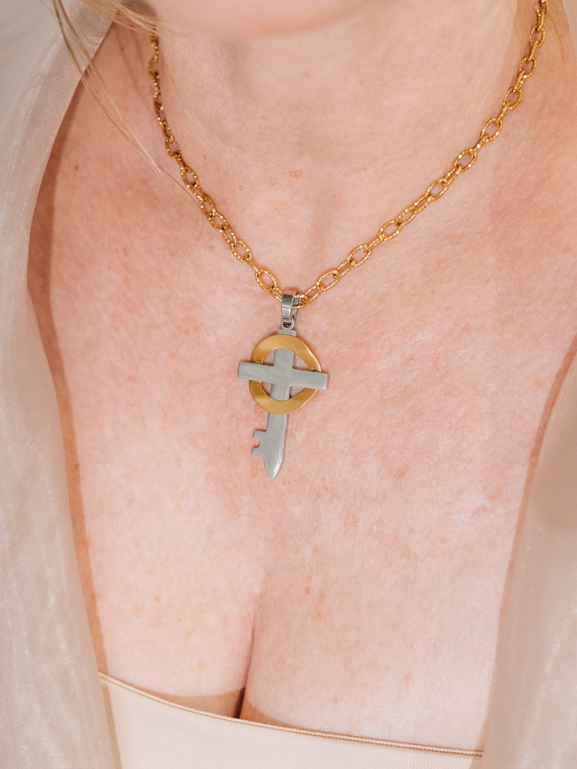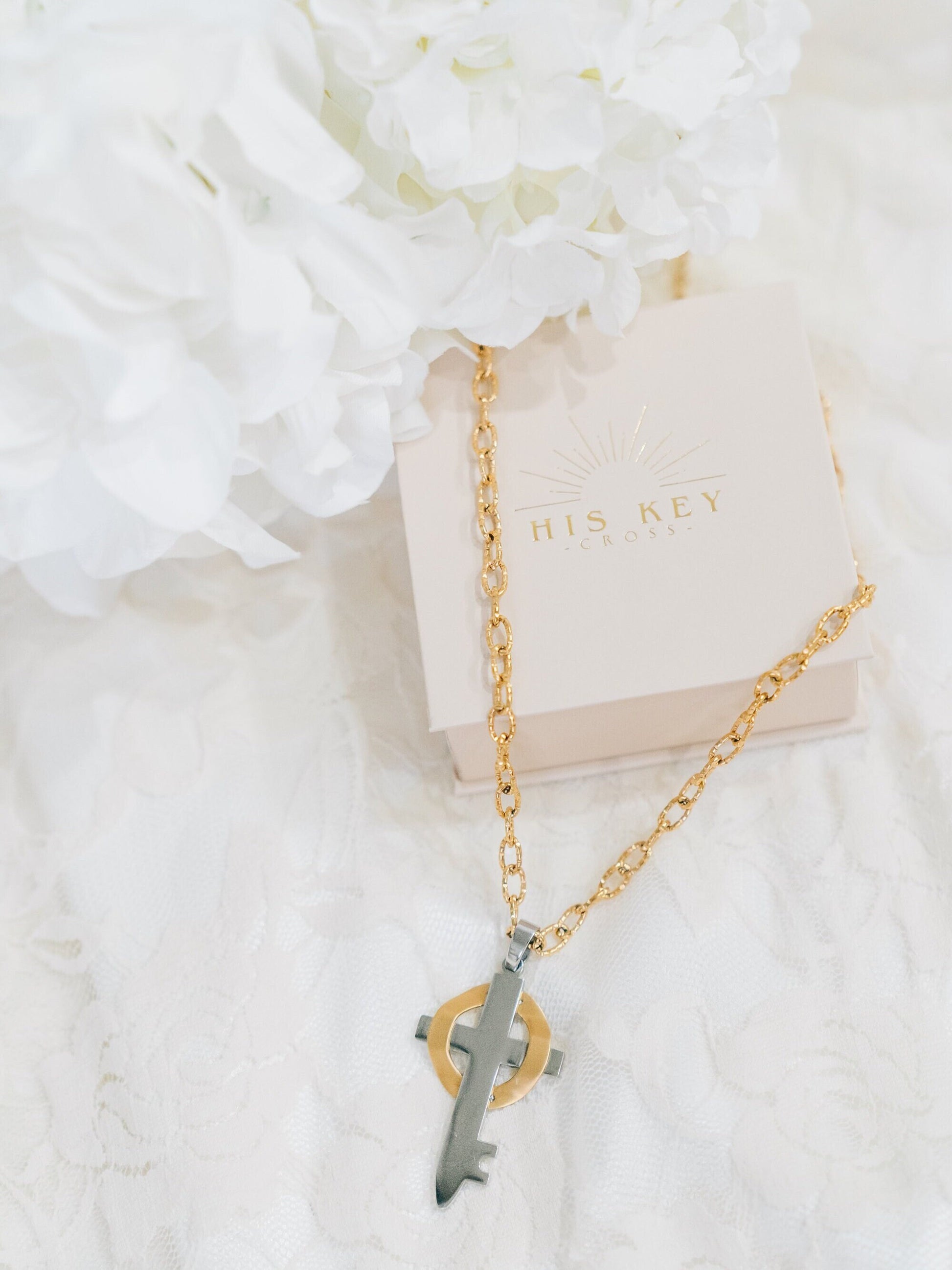 Immerse yourself in impeccable quality and enduring durability with this His Key Cross feminine style.